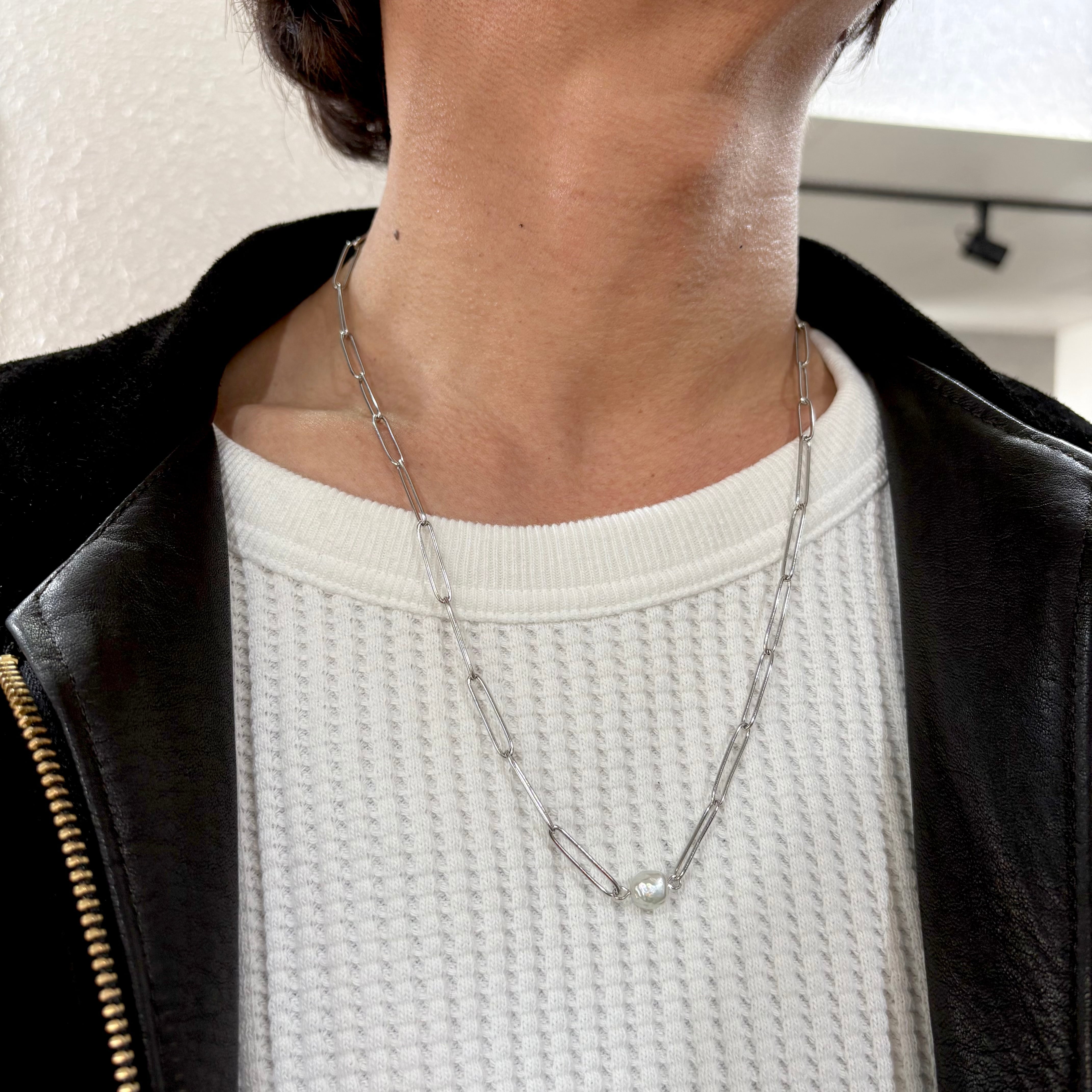 メンズおすすめ 1粒バロックパール サージカルステンレス ネックレス