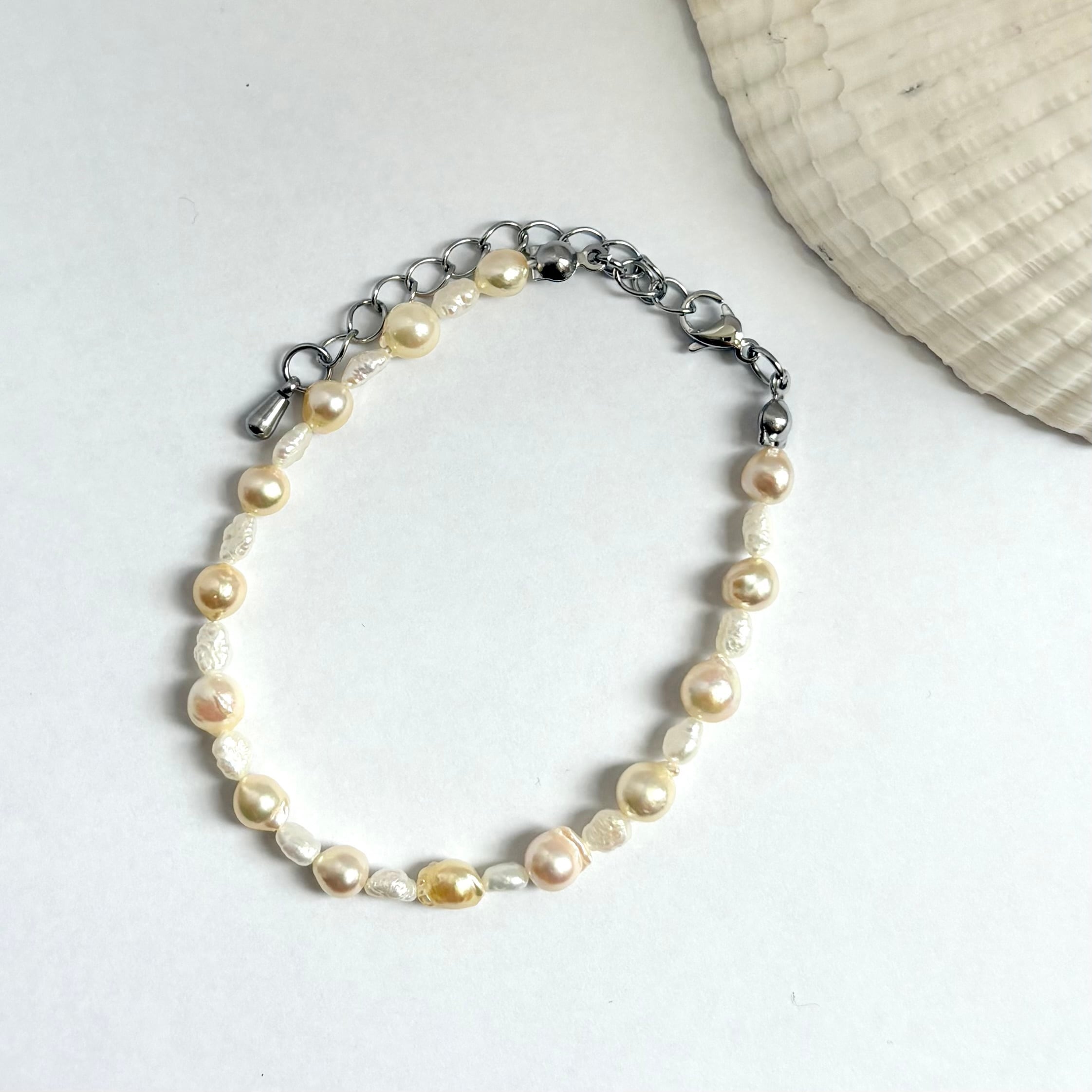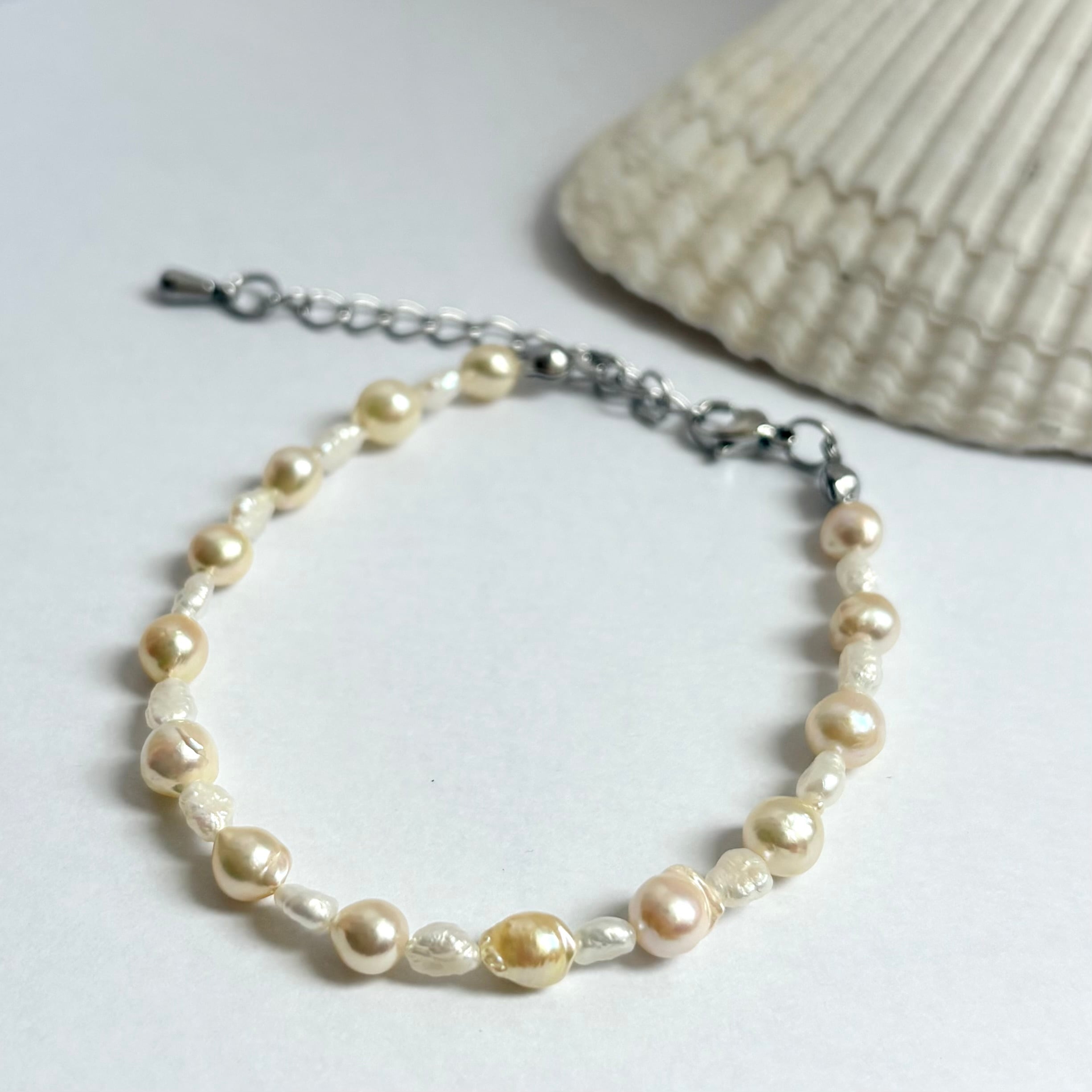 夏の手元にやさしくなじむ、淡水パールとアコヤセミラウンドのブレスレット。